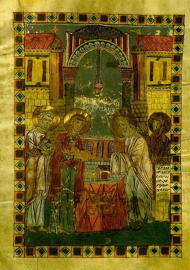 The Presentation in the Temple, miniature from the 11th-century Mugni Gospels.