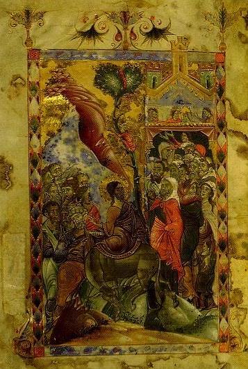 The Entry into Jerusalem, miniature from the 1287 Gospels.