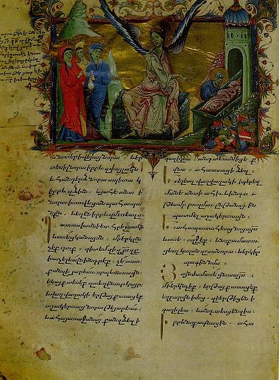 The Three Maries by the Sepulchre, miniature from the 1286 Lectionary of King Hetum II.