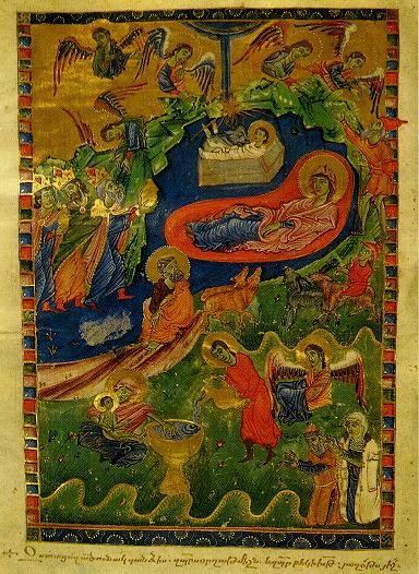 The Nativity, miniature by Avagh in the 1314 Bible.