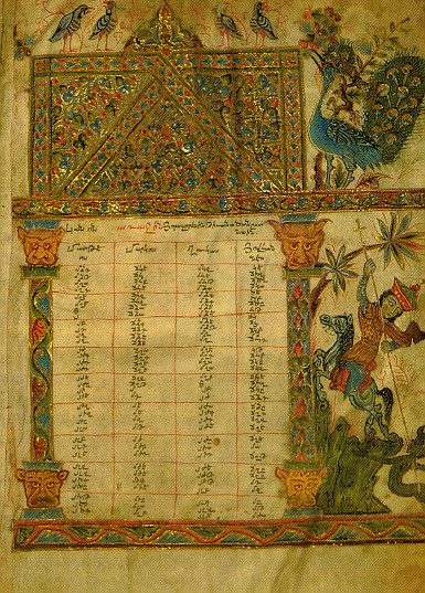 Page with khoran border showing St George and the Dragon by Thoros Taronatzi, from the 1323 Gospels.